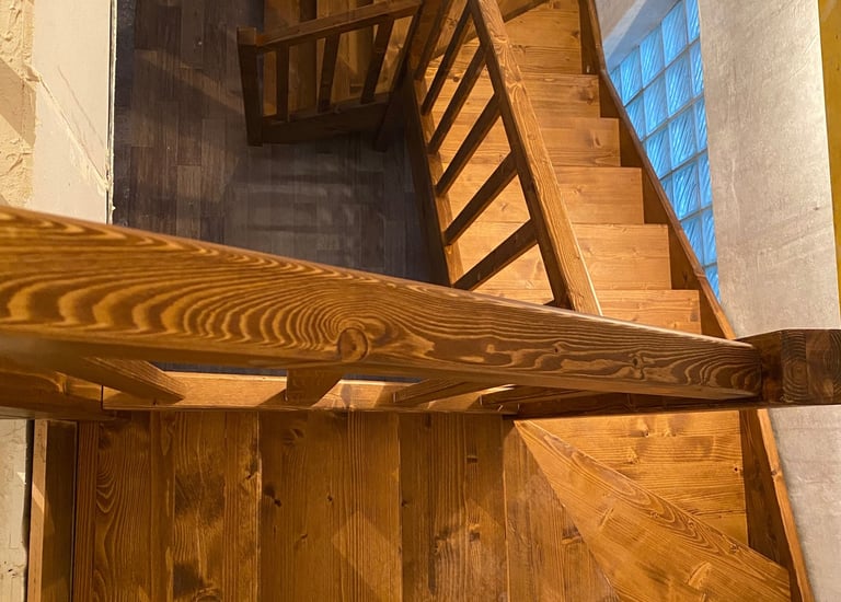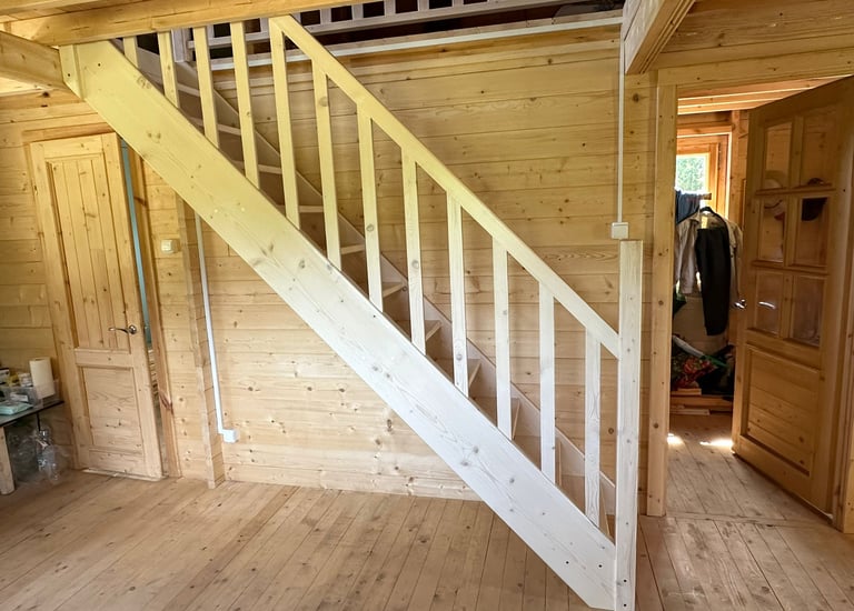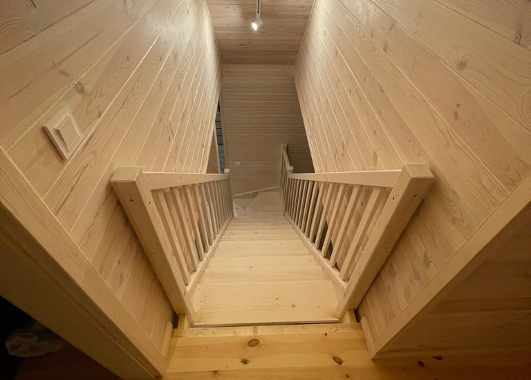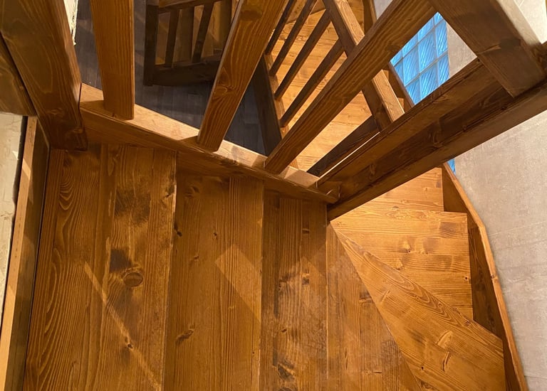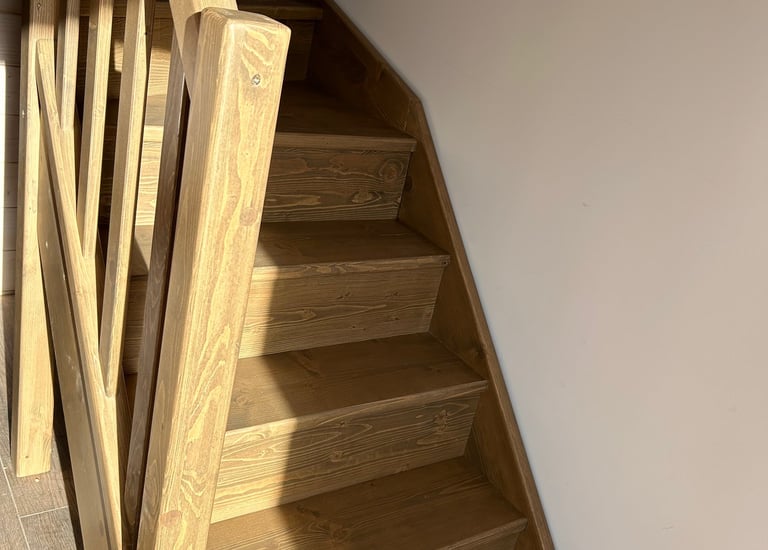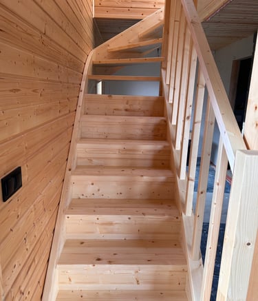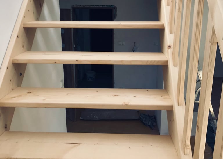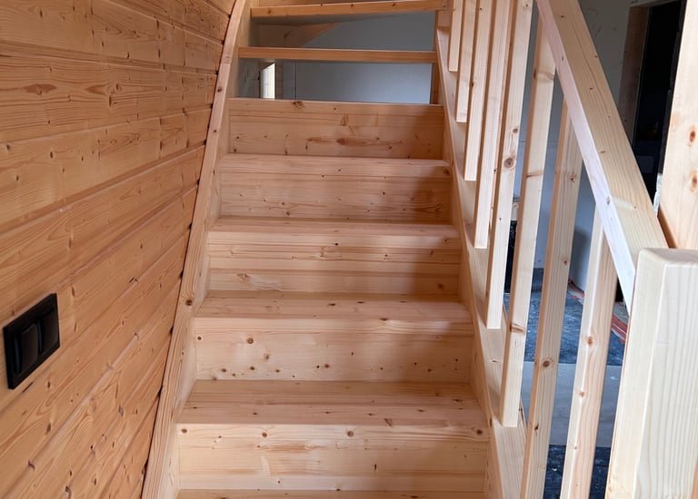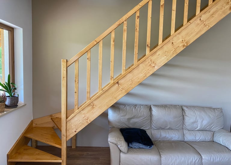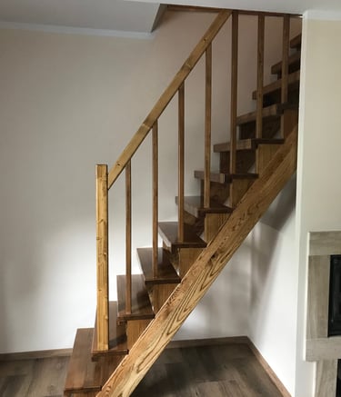 Schody świerkowe w kształcie litery L