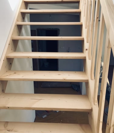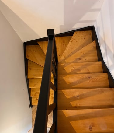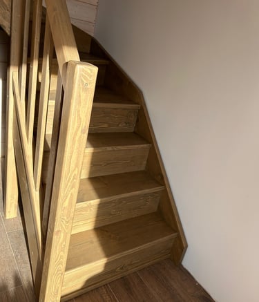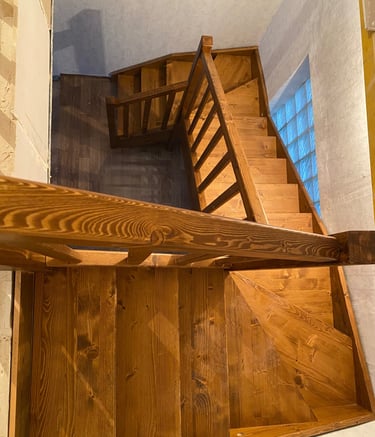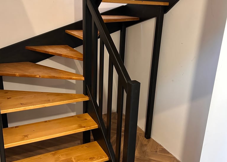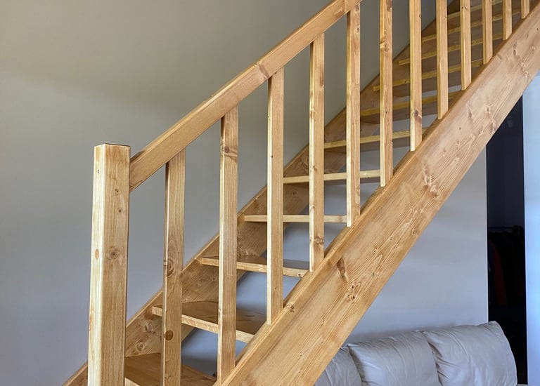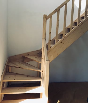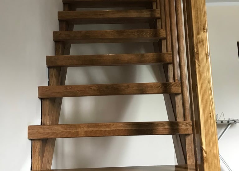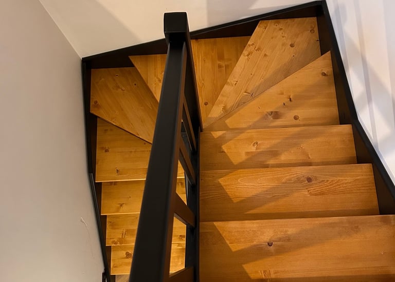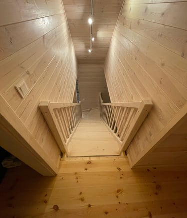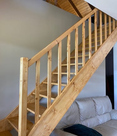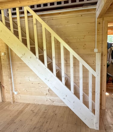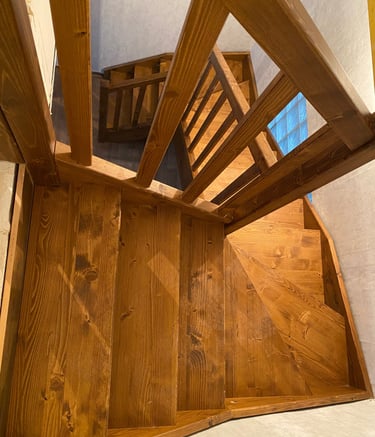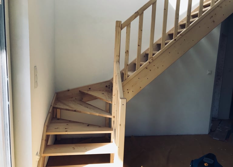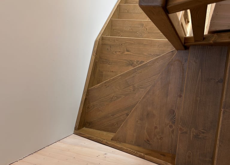 Schody świerkowe w kształcie litery L
