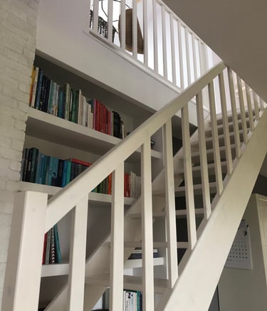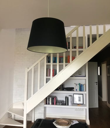 Schody z wykorzystaniem przestrzeni pod spodem na miejsce relaksu.