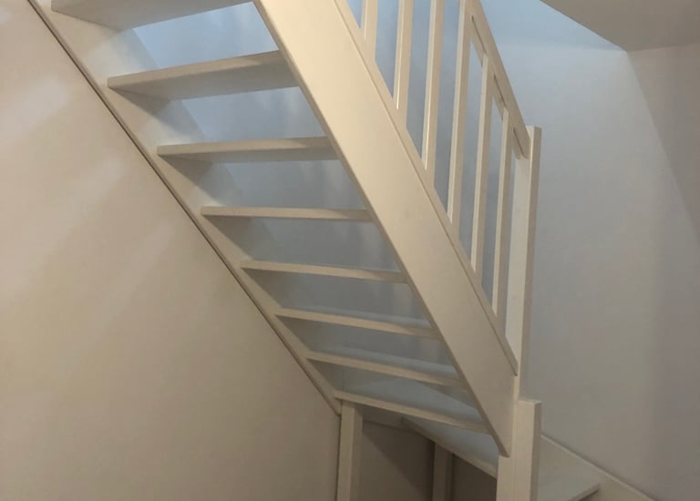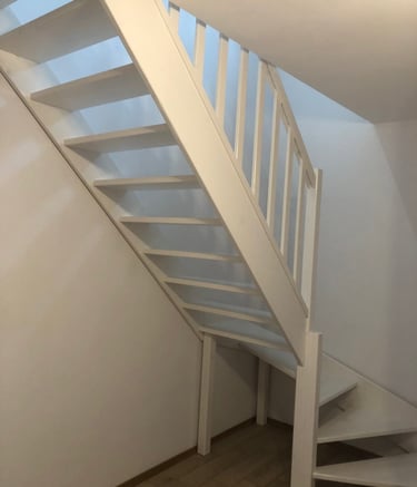 Schody świerkowe w kolorze białym